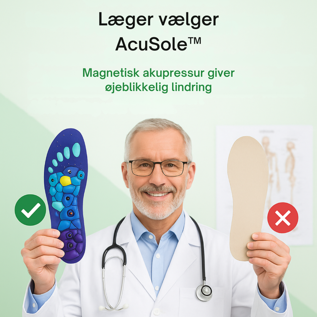 I modsætning til almindelige indlægssåler kombinerer AcuSole™ magnetterapi og akupressur for øjeblikkelig lindring. Anbefalet af fagfolk, designet til daglig komfort og dokumenteret til at reducere smerter og træthed naturligt.