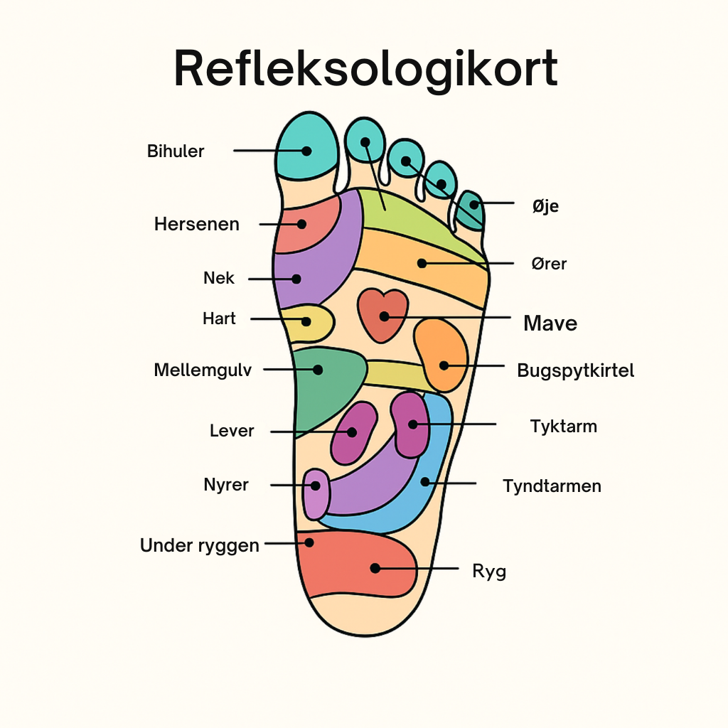 Refleksologi bygger på idéen om, at trykpunkter under dine fødder er forbundet til organer, muskler og kroppens systemer. Ved blidt at stimulere disse zoner reduceres spændinger, blodcirkulationen forbedres, og kroppens naturlige heling aktiveres.
