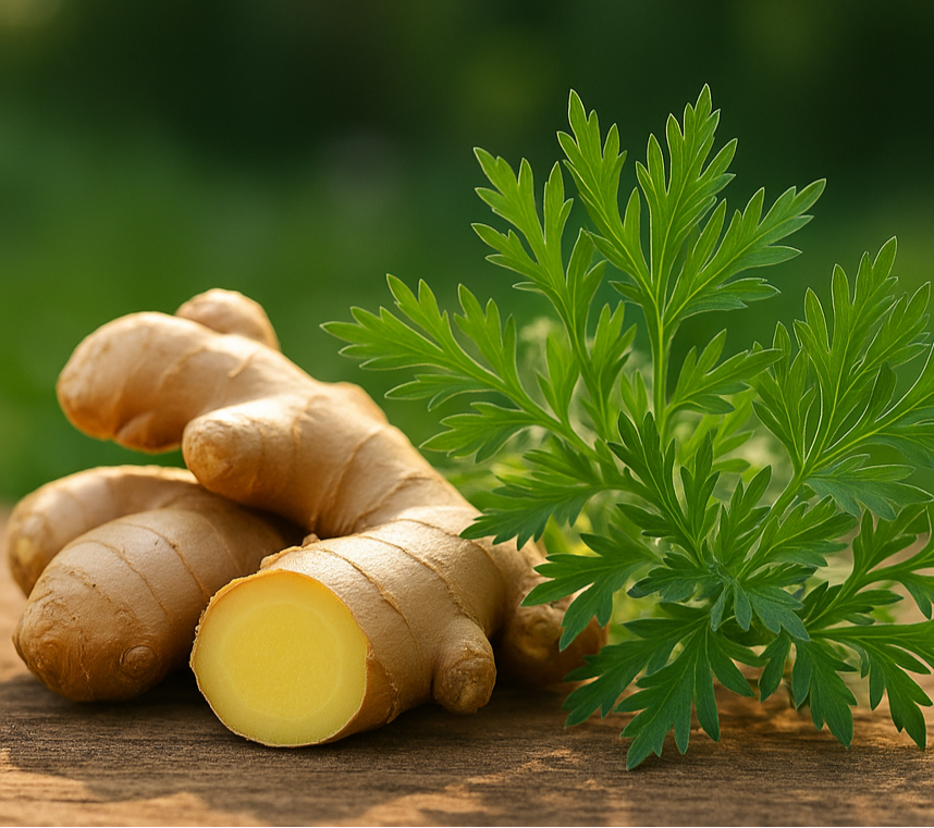 Mens Artemisia reducerer hævelse og stivhed, hjælper ingefær med at lindre smerte og genskabe naturlig bevægelse.