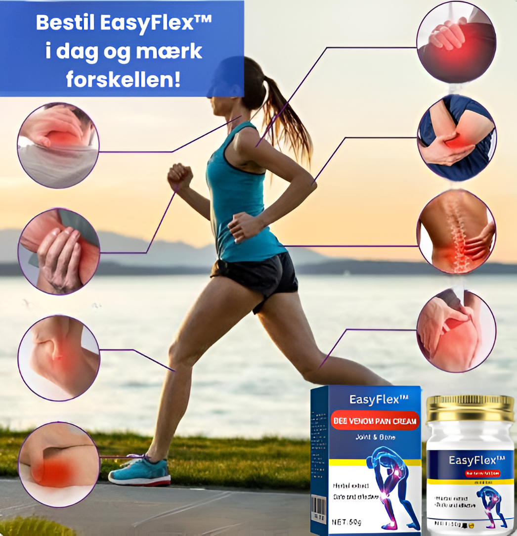 Genopdag glæden ved smertefri bevægelse. EasyFlex™ giver kraftfuld, målrettet lindring direkte til dine led – hurtigt. Klinisk testet og anbefalet af tusindvis – din genvej til en mere aktiv og smertefri hverdag. Vent ikke – begynd at bevæge dig frit igen på kun 3 dage!