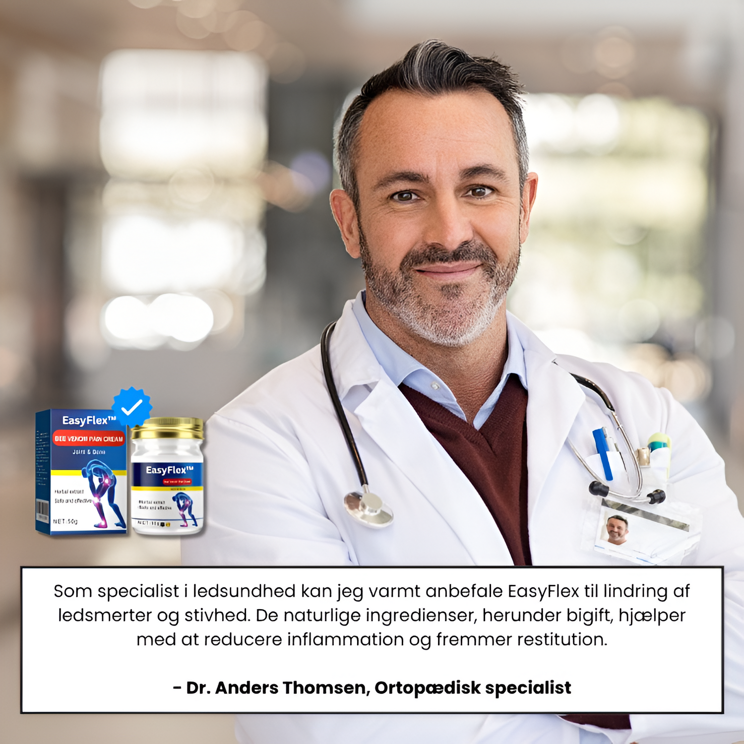 Opdag EasyFlex™ Creme – den naturlige løsning mod ledsmerter. Klinisk dokumenteret til at reducere ledsmerter og stivhed med op til 93 % på bare 3 dage.