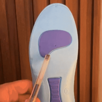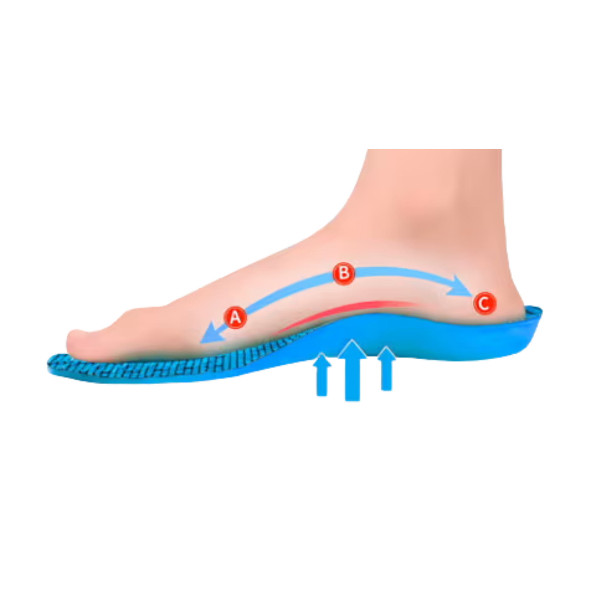 Den intelligente kombination af hældæmpning, svangstøtte og en blød metatarsalpude hjælper med at stabilisere foden, korrigere belastningen og reducere tryk på følsomme områder.