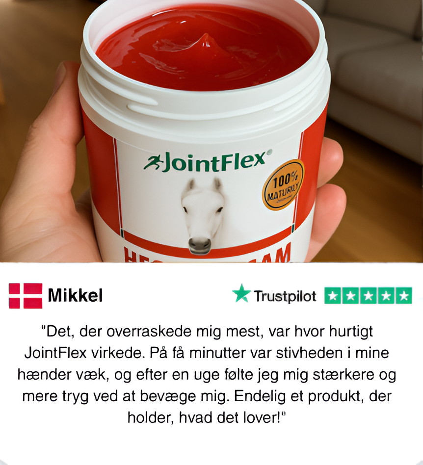 JointFlex® ændrer alt – på kun 3 dage kan du opleve en dramatisk reduktion af smerter og en helt ny følelse af frihed. Forestil dig at kunne bevæge dig frit uden ubehag, som om du var 25 igen.