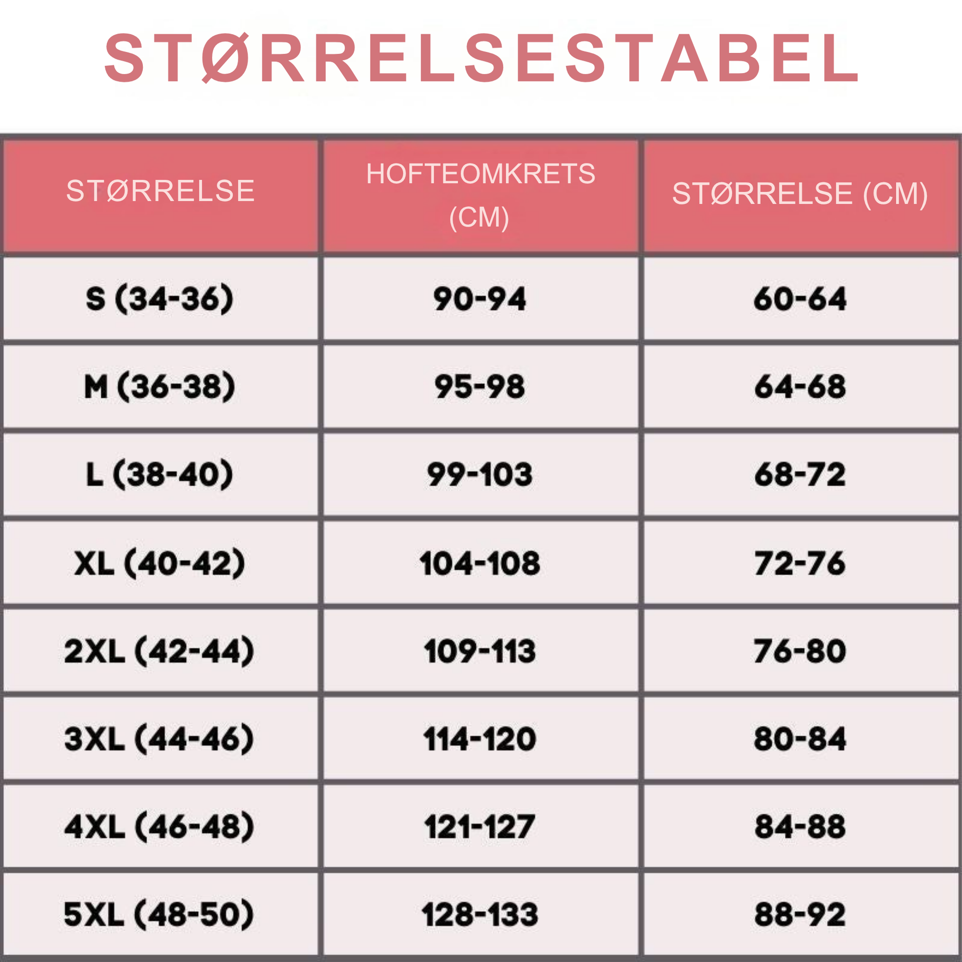 Vores undertøj er en smule mindre i størrelsen. Hvis du ligger mellem to størrelser, anbefaler vi at vælge én størrelse større. Er du stadig i tvivl, kan du bestille trygt – med vores Perfect Fit-garanti sørger vi for, at du får den rigtige størrelse