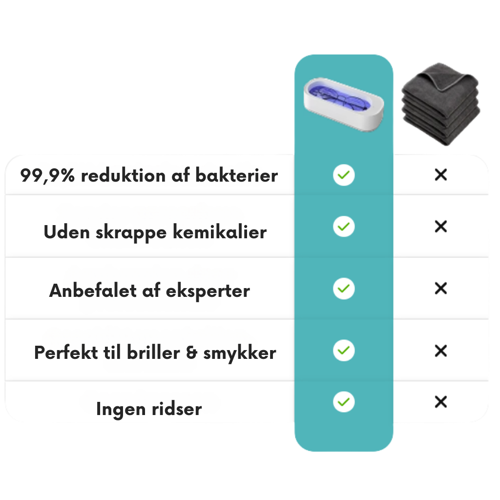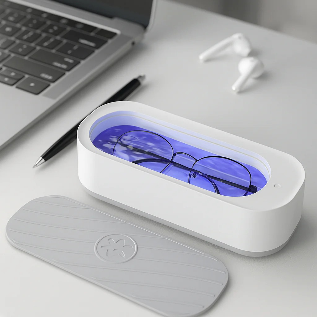 Med blot ét tryk på en knap fjerner enheden snavs og bakterier fra fx briller, smykker og accessories – helt uden brug af skrappe kemikalier. Perfekt til hurtig, sikker og stille rengøring både hjemme og på farten.