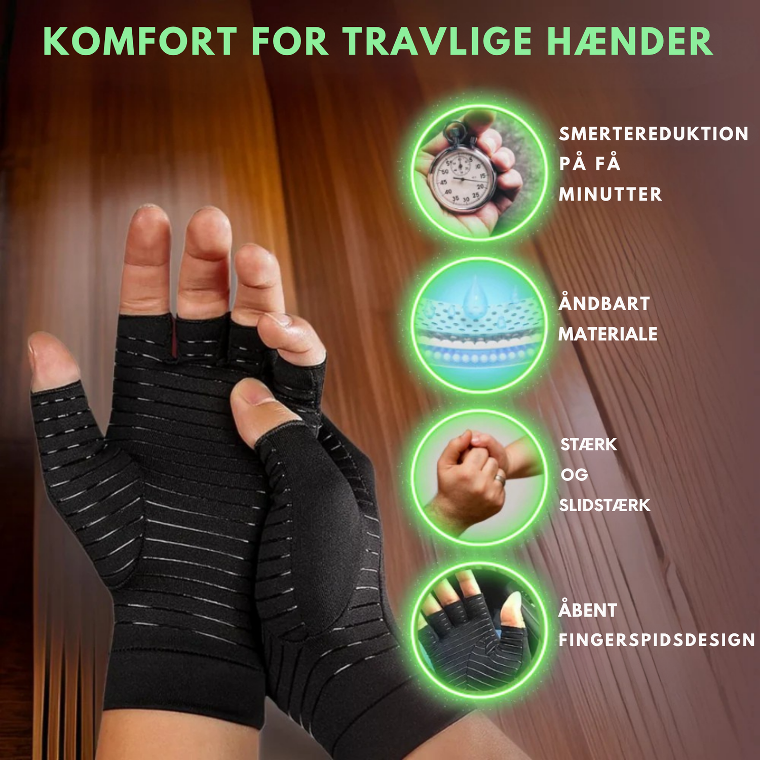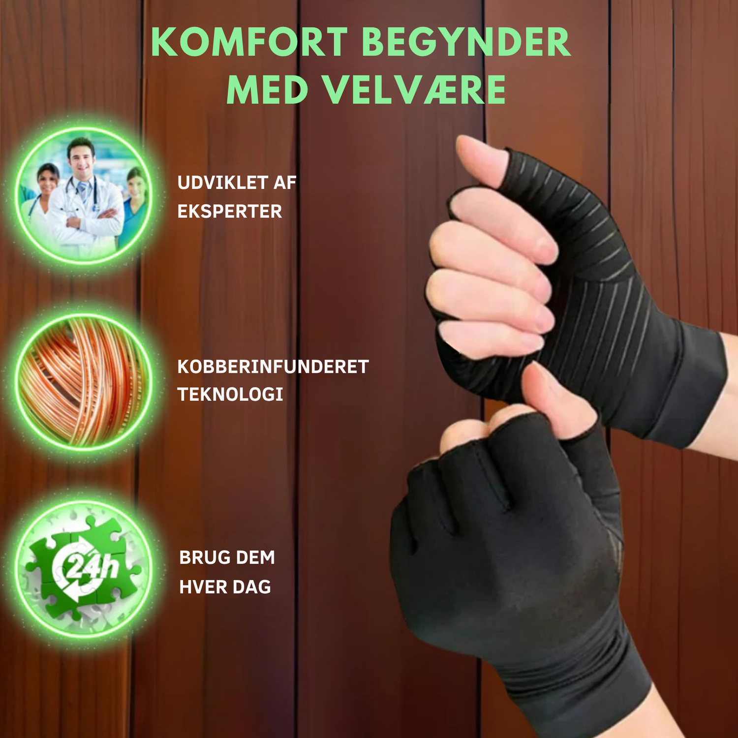 Træd ind i en verden af avanceret håndstøtte med vores unikke kompressionshandsker med kobber.