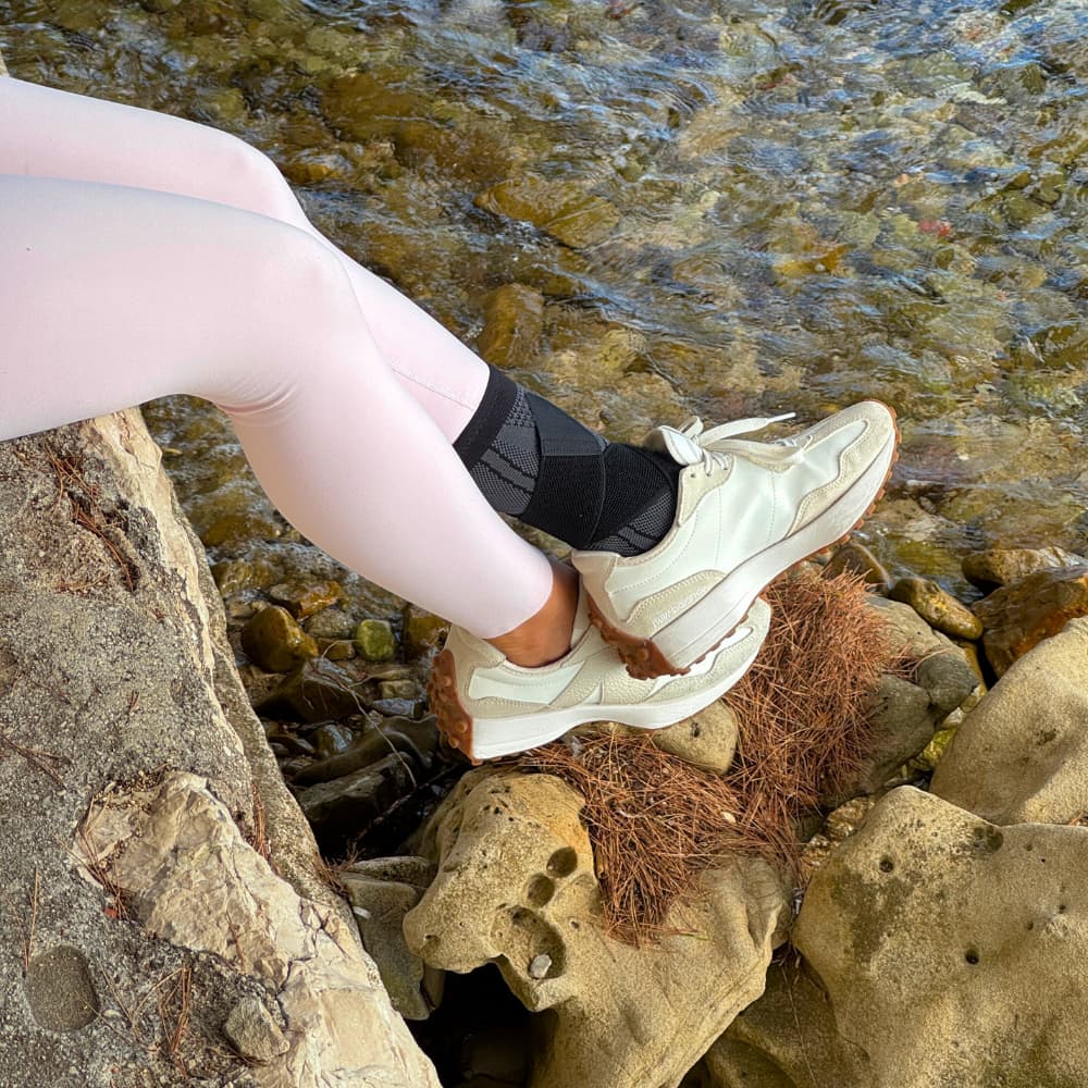 Den avancerede 360° kompressionsteknologi kombineret med to præcise støttebånd efterligner fodens naturlige muskelfunktion og aflaster trykket på plantarfascien, så vævet får ro til at hele.