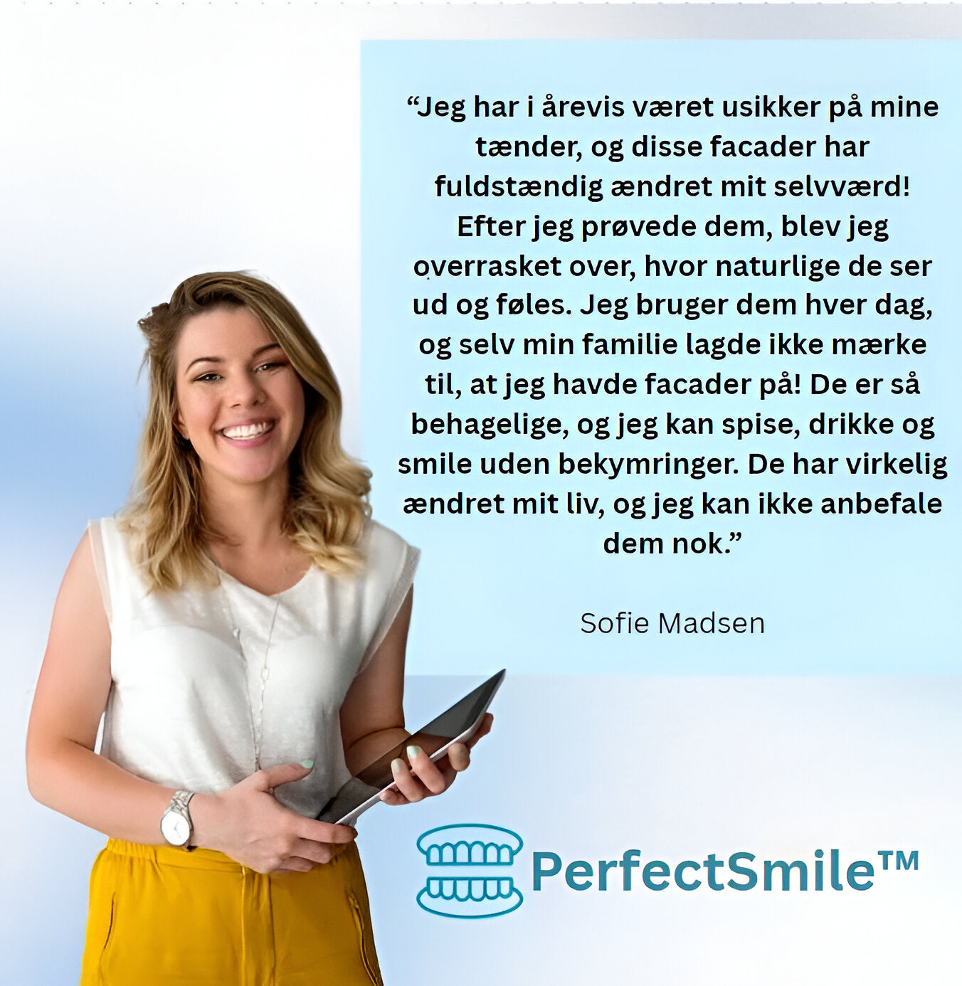 Bliv en del af over 1.249+ tilfredse kunder, der har forvandlet deres smil med PerfectSmile™!