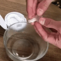 Varm blot materialet op i varmt vand, placer det i formen, og tryk det mod dine tænder for at få en perfekt pasform.