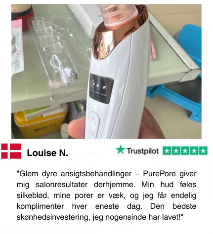 Sig farvel til tilstoppede porer og hudorme på få minutter med PurePore®. Med sikker, målrettet sugekraft renser den i dybden uden at skade huden — og giver dig en glattere, renere og sundere hud hver gang. Nyd en spa-oplevelse derhjemme når som helst!