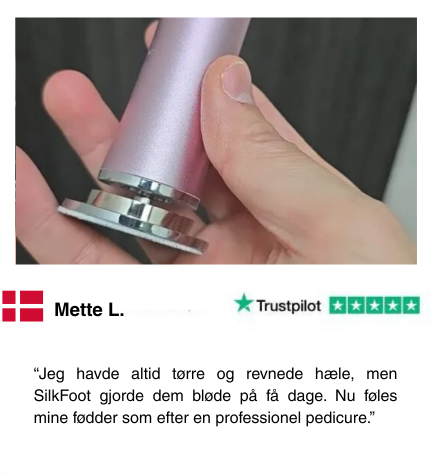 "SilkFoot® fjerner hård hud og sprukne hæle skånsomt men effektivt. Den avancerede teknologi giver blødere, sundere fødder på få minutter – helt uden risiko for skader. Jeg anbefaler den til patienter, der ønsker at forbedre fodkomforten og genvinde selvtilliden med velplejede fødder."